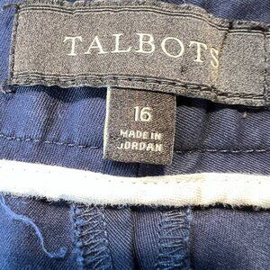 Embrace breezy sophistication with these Talbots Signature pants in size 16, beautifully tailored from a premium 98% cotton blend. The rich navy base is playfully embroidered with vibrant green palm trees, bringing a touch of tropical whimsy to a timeless silhouette.
