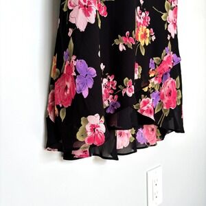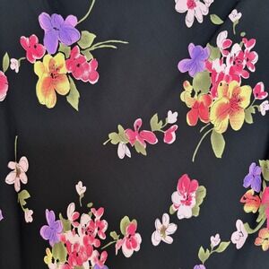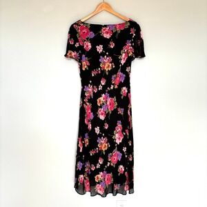 Talbots Size 8 Floral Dress Black Pink Midi Cap Sleeve Lunch Date Church Dress