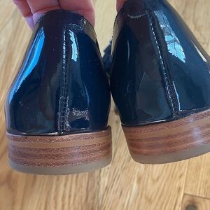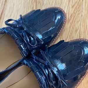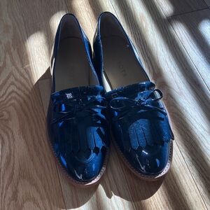 Talbots Sleek Navy Patent Leather Loafers with Fringe Detail