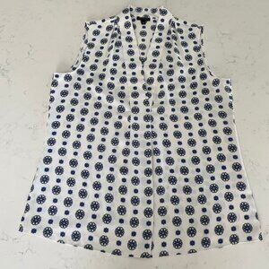 Talbots Sleeveless V Neck Easycare Medallion Print Top Blue + White Sz S