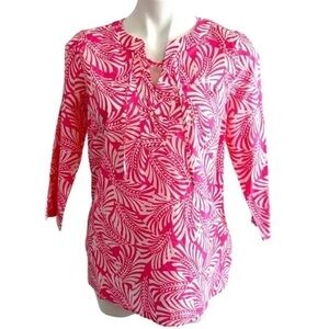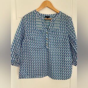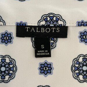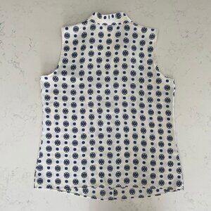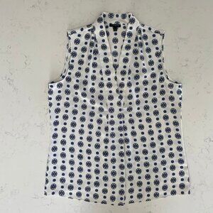 Talbots Sleeveless V Neck Easycare Medallion Print Top Blue + White Sz S