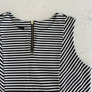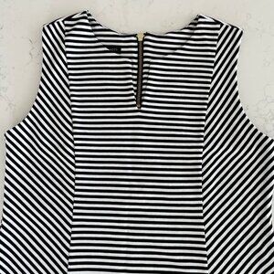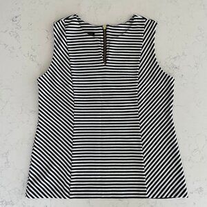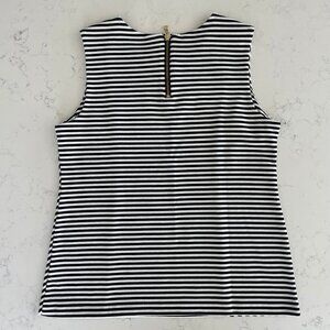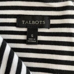 Talbots Slvless Striped Round Neck w Split V Cotton Modal Top Black & White Sz S