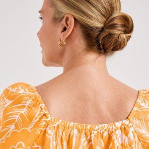 Talbots Square Neck Linen Top in Leafy Tropical Print Size M