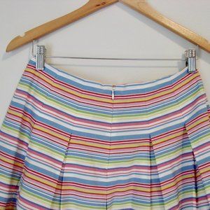 Talbots Skirt Colourful Striped Pleated A-Line Flare Skirt ~ Size 2 ~ 98% Cotton, 2% Spandex