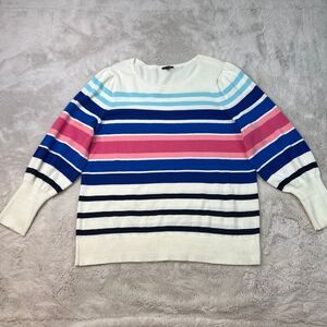 Talbots Striped Sweater Womens Plus Size 1X Crew Neck Cotton Blend Pink Blue