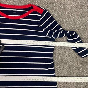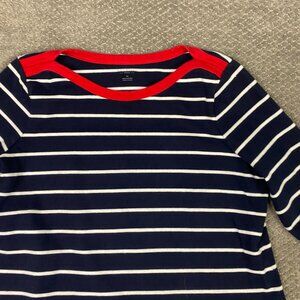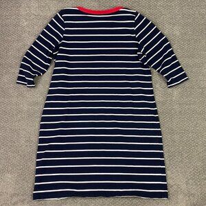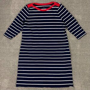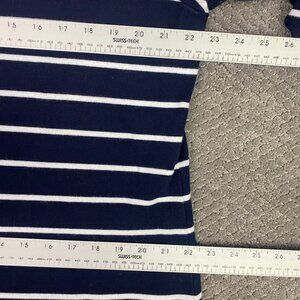 Talbots Sweater Dress Women's 1X Navy Blue White Cotton Shift Knit Striped Woman