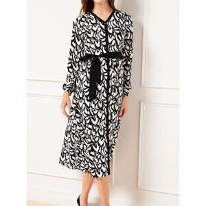 Talbots Sz 10 Dress Crepe Midi Black White Classic Office Boho Workwear