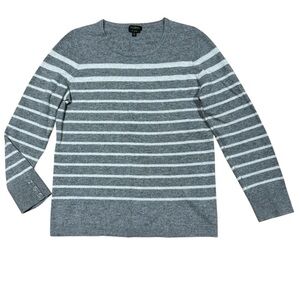 Talbots Sz M Sweater Gray Striped Cashmere Classic Preppy Office Casual Luxury