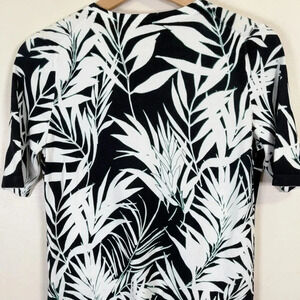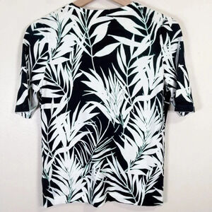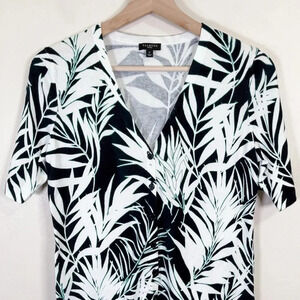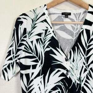 Talbots Tropical Leaf Fern Short Sleeve Button Sweater