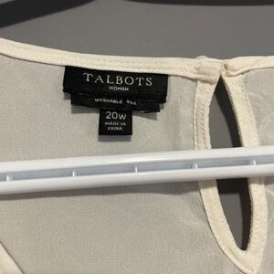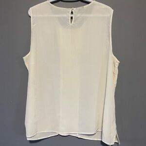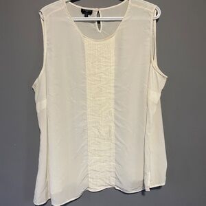 Talbots Washable Silk Pleated Front Cream Sheer Sleeveless Round Neck Blouse 20W
