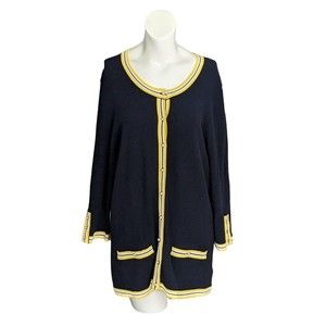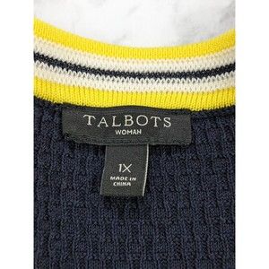 Talbots Womens 1X Navy Knit Cardigan 3/4 Sleeves Patch Pockets Pearl Buttons