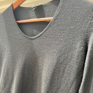 Talbots Womens Black Classic Merino Wool V-Neck Minimalist Pullover Sweater XS