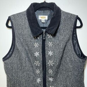 Talbots Women’s Grey Snowflake Wool and silk Blend novelty vest in Size L