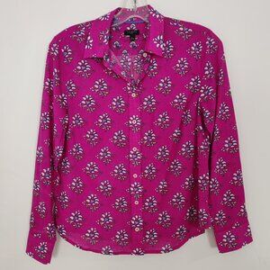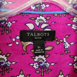 Talbots Women's Shirt Blouse Size SP Petite Cotton Pink Ditsy Heart Barbiecore Floral Casual Lightweight