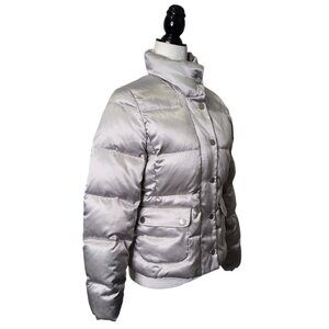 Talbots Women’s Silver Grey Puffer Jacket Duck Down Size S