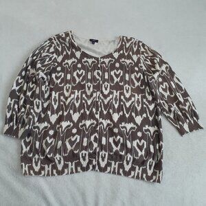 Talbots Women's Size 1X Brown Beige Ikat Pattern Cotton Silk Blend Cardigan