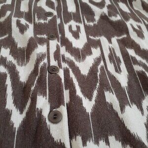 Talbots Women's Size 1X Brown Beige Ikat Pattern Cotton Silk Blend Cardigan