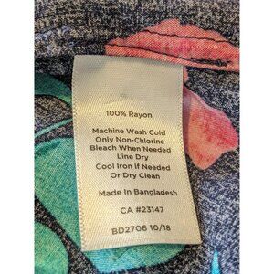 Talbots Womens Tunic Top Plus 3X Split Neck Lightweight Floral Popover Black