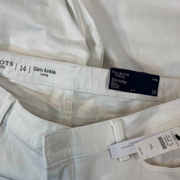Talbots Women's White Flawless Slim Ankle Jeans - Size 14 Long - NWT $95