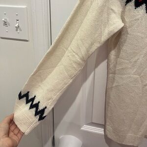 Talbots Womens Wool Blend Fair Isle Nordic Cream Red Blue Sweater Large Winter