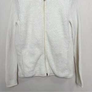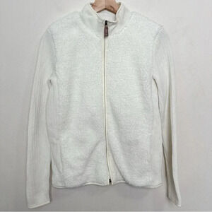 Talbots Womens Xsmall Sherpa Full Zip Ribbed Sleeves Jacket Ivory Color
