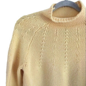 Talbots Soft Butter Yellow knit long sleeved sweater. 100% Wool, ultra soft. Attractive knit pattern on yoke.