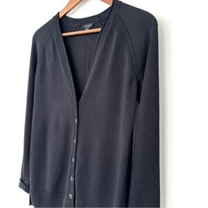 Talbots cardigan with v-neck and long sleeves, button front, straight cut.