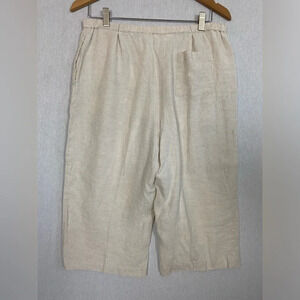 Talbots cream coloured pull on Irish linen cropped wide leg pants Sz M