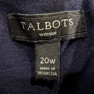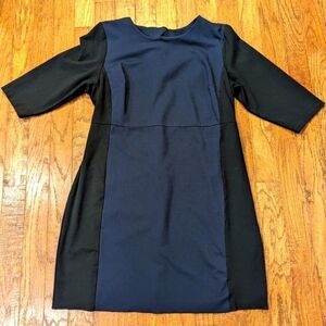 Talbots form fitting colour block Sheath dress, Stretchy comfort fit with 3/4 Long Sleeves, Navy with Black Sleeves and sides. plus Size 20W. Worn 3 times. Flattering and comfortable. Looks best if you have fuller hips and bust Excellent Condition, no flaws.