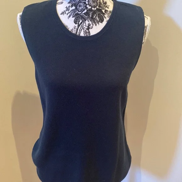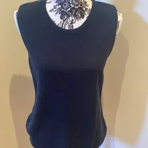 Simple knit sleeveless top with round neck. Dark teal green colour
