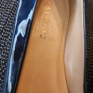 Brand is TALBOTS. Navy blue in color. Genuine leather. Size 8.5 ladies. Made in brazil.
