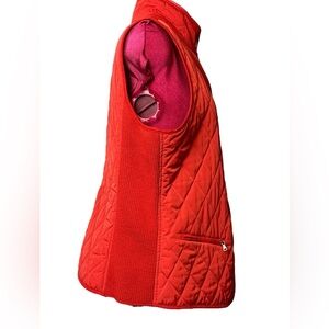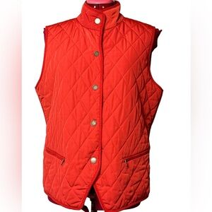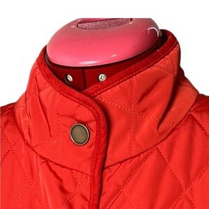Talbots poppy-red lined quilted vest pockets snap closure stand-up collar