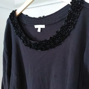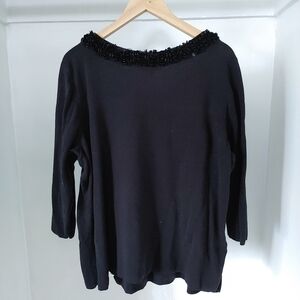 Talbots rsvp | black long sleeved sweater with beaded collar plus sized