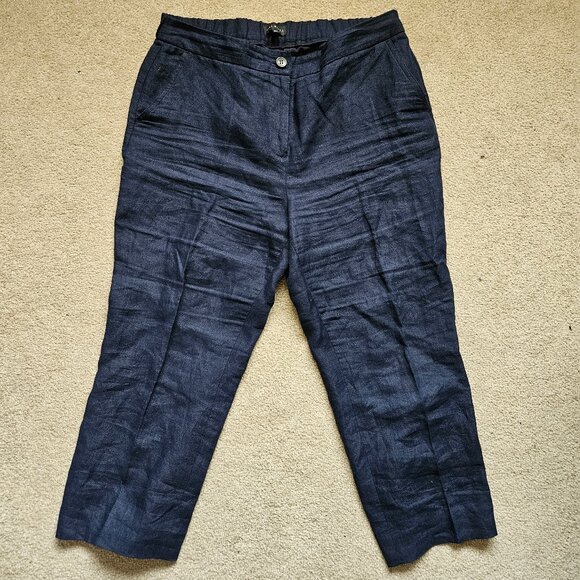 Talbots - size 10P - Navy Blue 100% Linen Capri Pants - Made in Vietnam