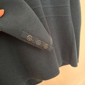 Beautiful teal (jewel) colour. 100 per cent merino wool. Does not itch. Structured sweater cardigan perfect for the holiday season