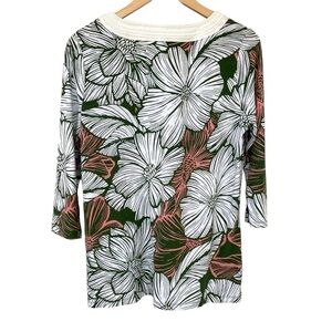 Talbots tunic in a stretch jersey knit, tropical floral print.