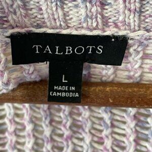 Talbots v-neck loose knit long sleeve lilac purple sweater 100% cotton Large