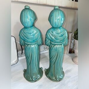 Tall Buddha sculptures, distressed purposely measurements shown.