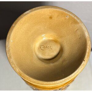 Tall Ceramic Vase Diamond Lattice Design Signed Carol MCM Gold Brown 8.5" Tall