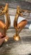 Tall rustic gold painted metal deer candle holders. They have golden glitter saddles. Unmarked.
