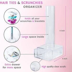 Precious Time Saver - Our scrunchy storage tower conveniently holds all your hair accessories, bangles and bracelets in one visible place! Plus it has a smooth transparent surface, making it easy to glide out the scruchy or bracelet when needed in a hurry. And of course, this jewelry organizer is super easy to clean and portable!