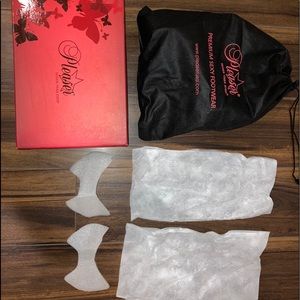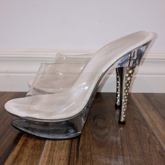 Porter 1fois pour un deguisement , brillant sur le talons , vien avec la boite et les petits sacs pour protéger les talons , platform de 6cm , talons haut d'environ 11cm (4.5pouces) , je vais aller les faire laver avant de les vendre ,size 9 mais font comme des 8