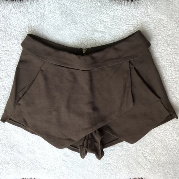 Talula, size 00, skort in dark olive green featuring two front pockets.