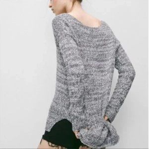Talula relaxed fit heathered cotton/cashmere/angora blend marled texture sweater in well loved condition with side vents and open neckline. Please see pictures of actual sweater for condition and vent length