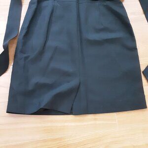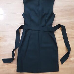 Tie belt. Side zip closure. Keyhole detail at back neckline. Back slit at hem.
