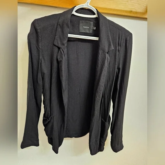 Description: Crafted for both sophistication and comfort, this versatile piece effortlessly transitions from office elegance to casual chic. The relaxed fit ensures freedom of movement, while the open front adds a modern edge. Made from lightweight material, it's perfect for layering in any season. Whether it's a professional meeting or a night out, this black blazer is your go-to choice for a polished and trendy look.