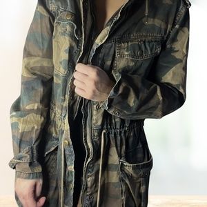 Cute, camo and comfortable. In great condition Has a string to draw in the centre and a hood! Not waterproof.