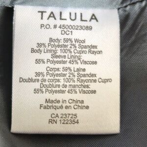 Fabric: 59% wool, 39% polyester, 2% spandex