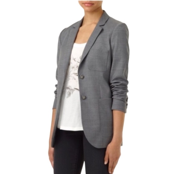 Talula School Boy blazer with a tailored lapel and light shoulder pads. Large pockets, thin lapels, light weight with great button detailing. Turn the cuffs up for a different look. Versatile & neutral grey colour that is a definite a must-have business casual wardrobe staple!