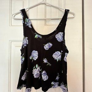 Size S, hardly worn. Black crop top with purple and blue flowers.